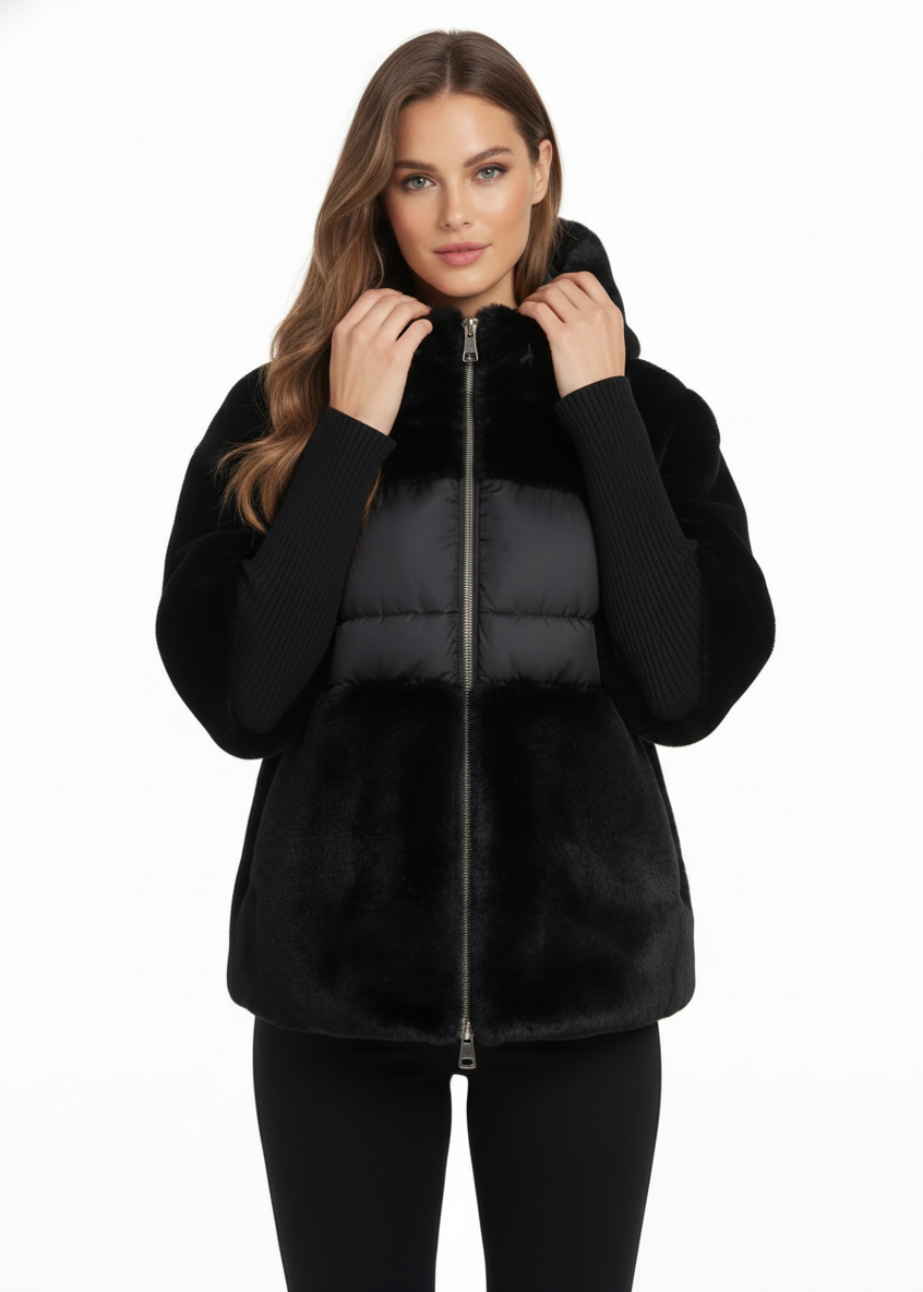 ABRIGO ELEGANTE CON DETALLES DE PIEL SINTÉTICA