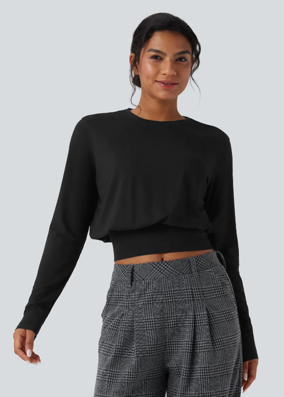 Sencillo, moderno y lleno de estilo. Este top de manga larga con cuello redondo destaca por su corte ajustado en la cintura, que realza la silueta aportando un toque elegante y femenino. Su tejido suave y elástico garantiza comodidad sin perder ese aire sofisticado que lo hace perfecto para cualquier ocasión.