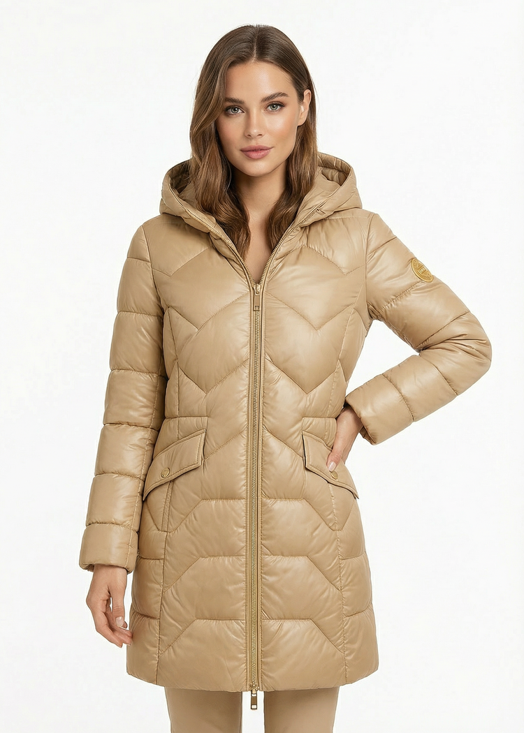 Descubre la combinación perfecta entre calidez elegante y diseño moderno con esta chaqueta acolchada larga. Creada para los días fríos de otoño e invierno, su relleno aislante conserva el calor sin añadir peso, ofreciendo una sensación ligera y extremadamente cómoda. La capucha envolvente aporta protección frente al viento y la lluvia suave, manteniendo un look pulido en cualquier ocasión.