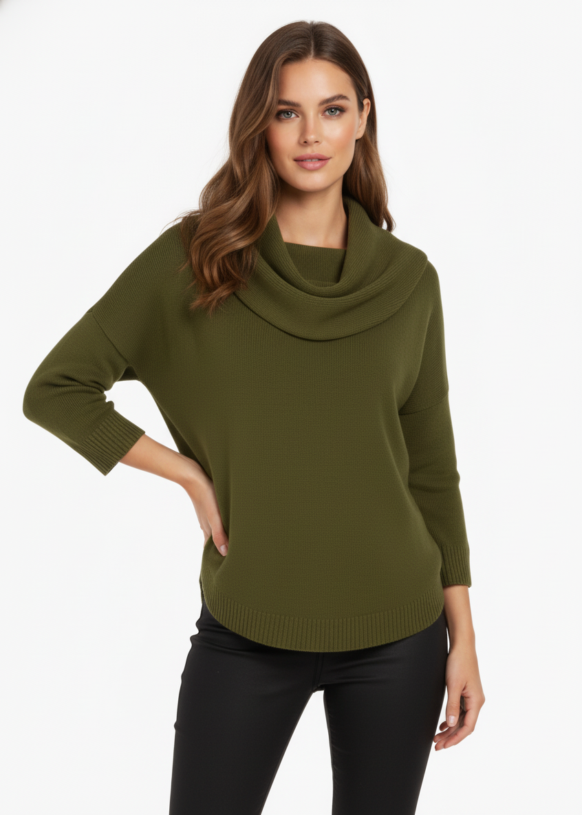 Redefine la elegancia cómoda con una combinación exquisita de texturas suaves y un diseño que nunca pasa de moda. Su sofisticado cuello drapeado y su silueta relajada crean un look refinado que funciona igual de bien en la oficina, en una salida casual o en un plan de fin de semana.