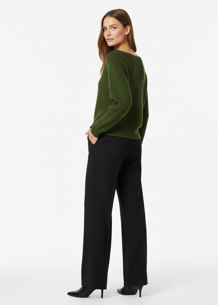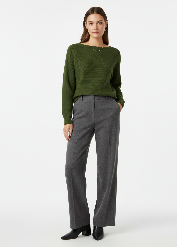 Comodidad y estilo en perfecta armonía. Este jersey de punto suave ofrece un diseño relajado con corte recto y caída fluida que se adapta con elegancia a cualquier silueta. Ideal para los días frescos, su textura ligera y el acabado premium aportan calidez sin perder sofisticación.