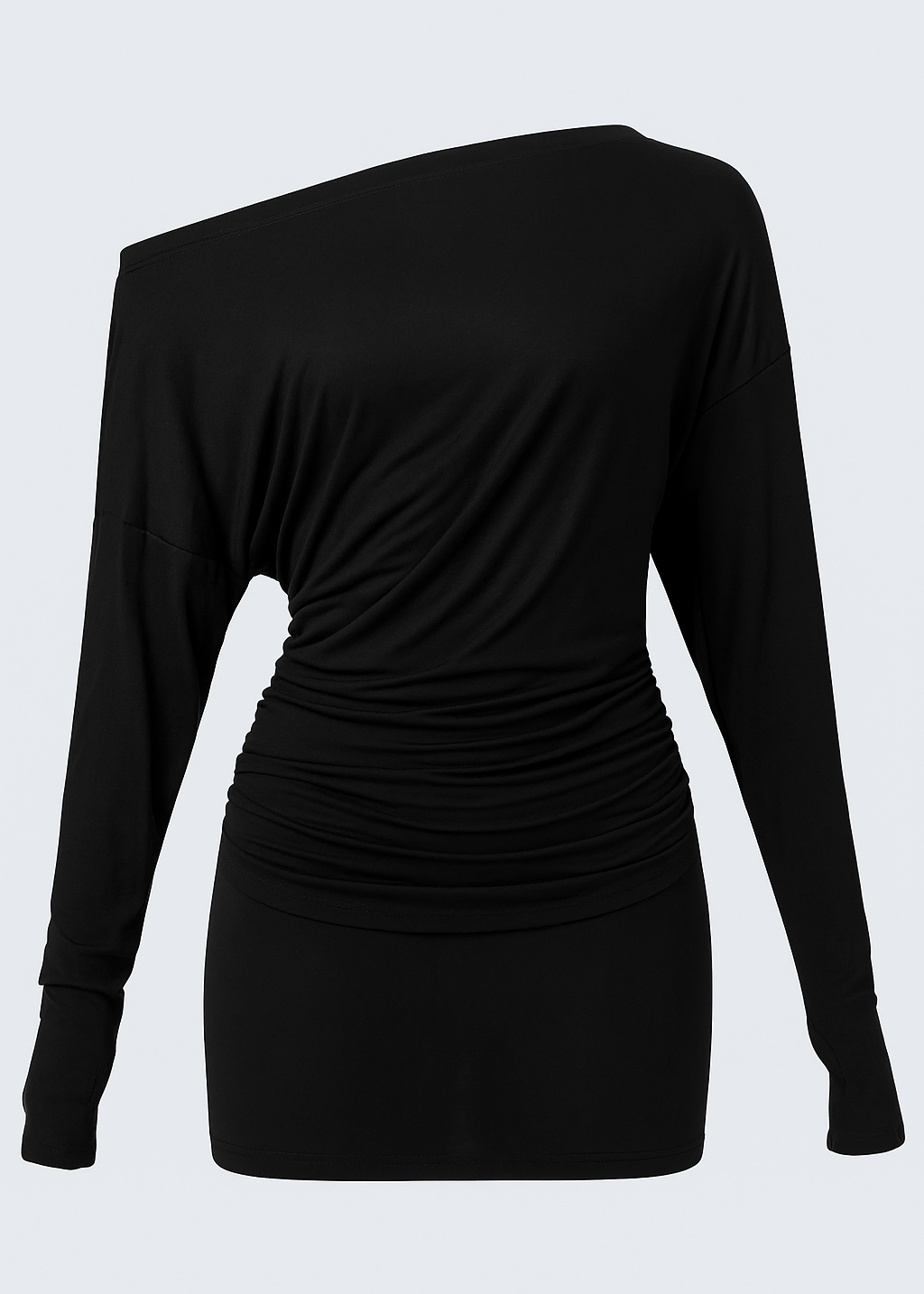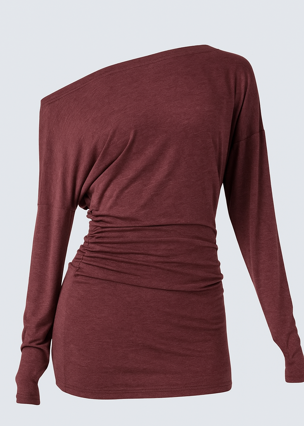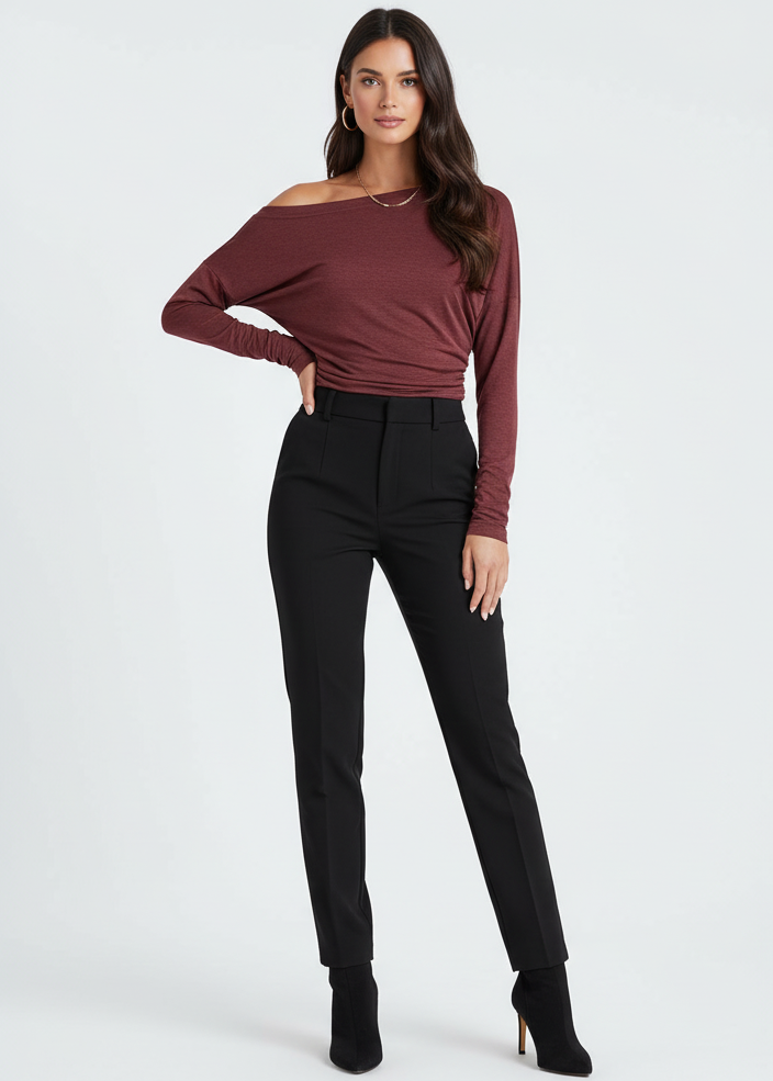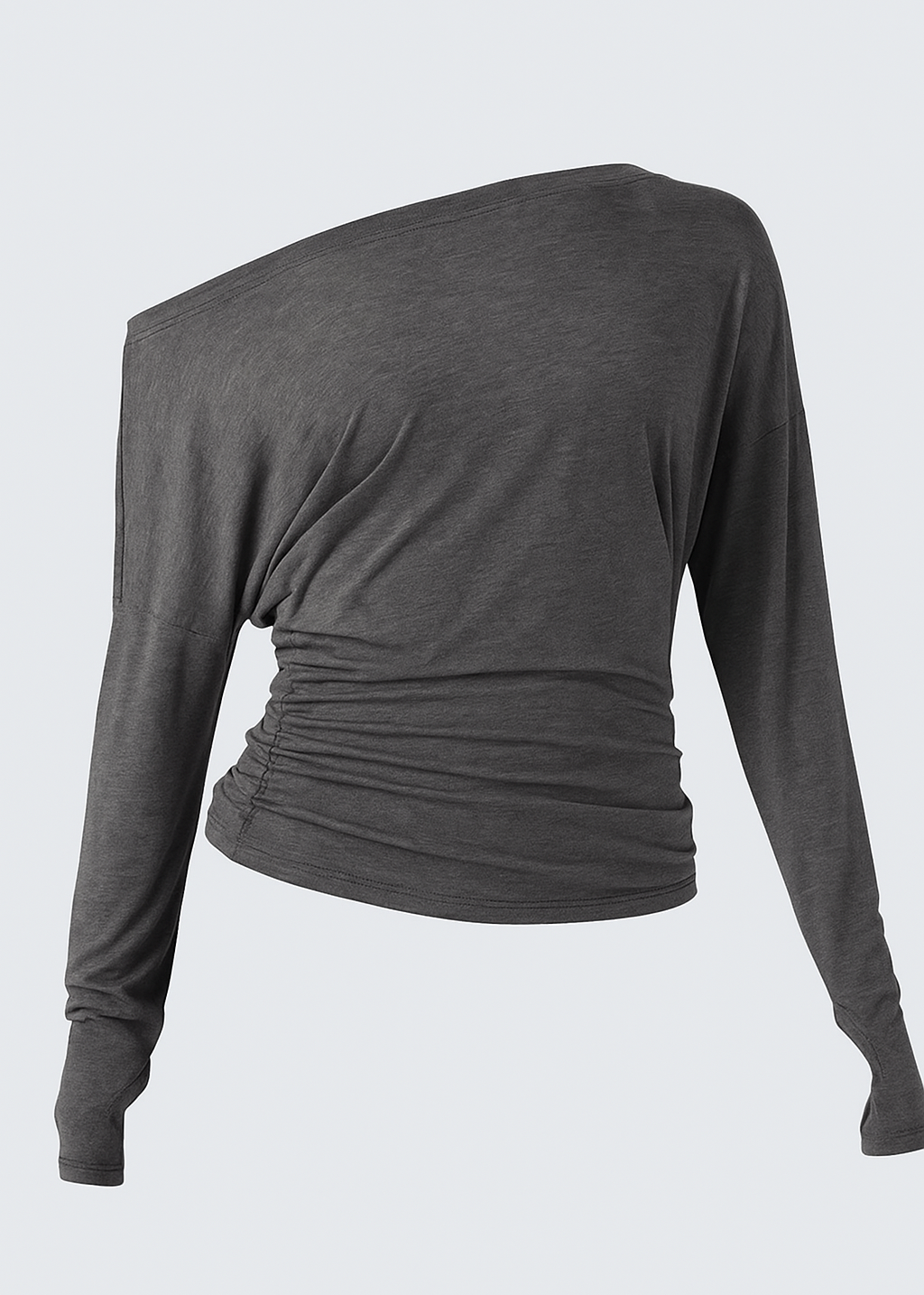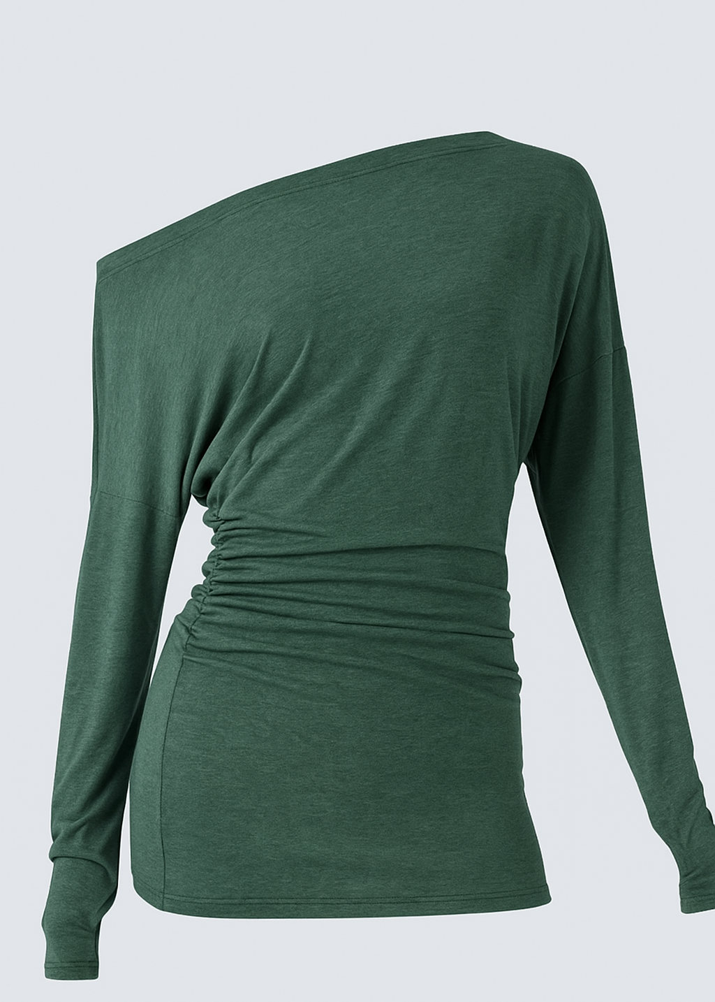 Fluido, moderno y con un toque irresistible de elegancia. Este top de hombro caído combina comodidad y estilo con un diseño asimétrico que realza la silueta de manera sutil y favorecedora. Su tejido suave y elástico se adapta perfectamente al cuerpo, brindando una sensación ligera y sofisticada.