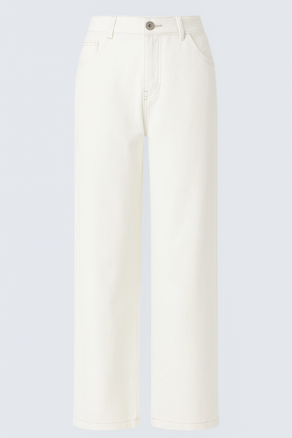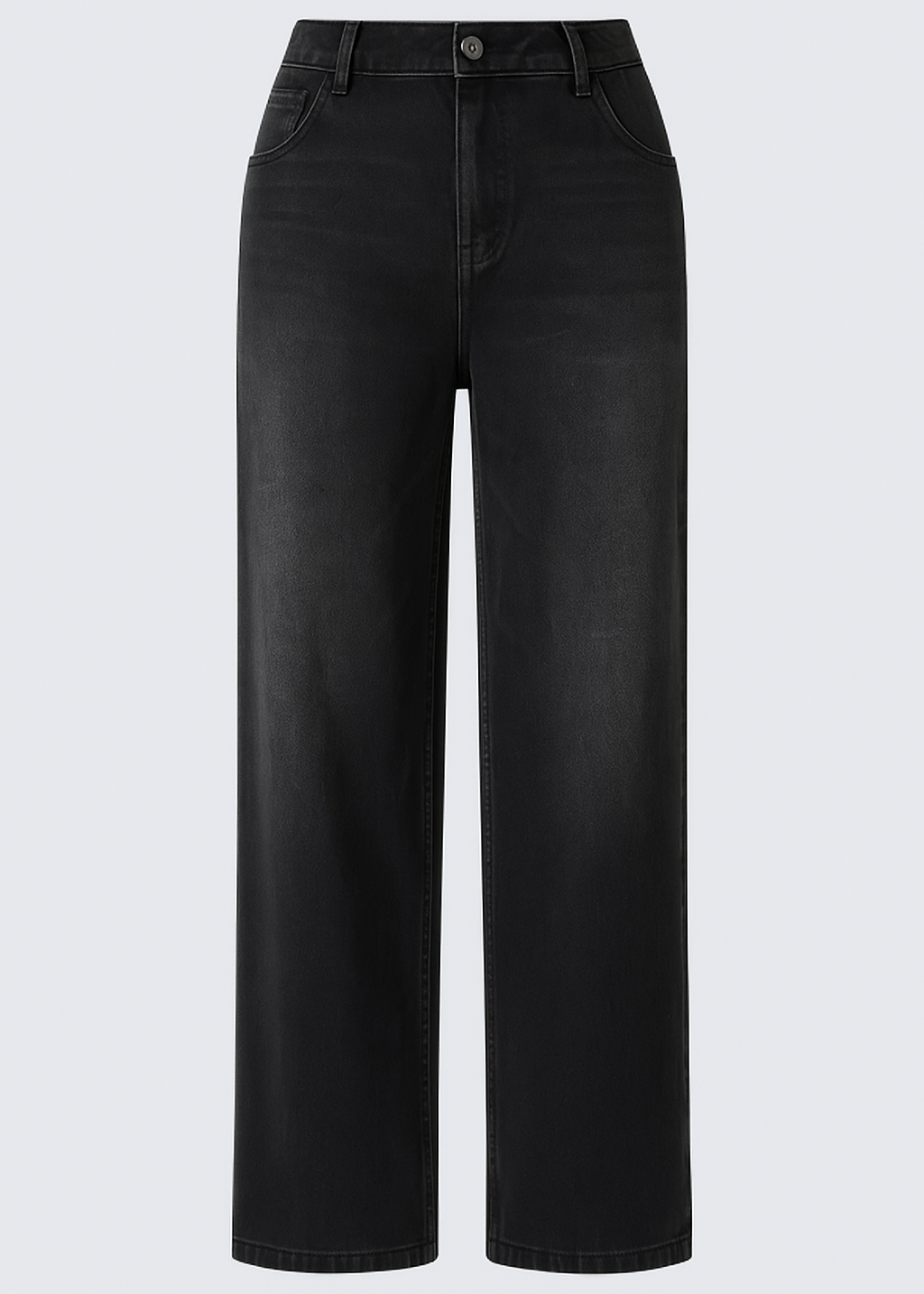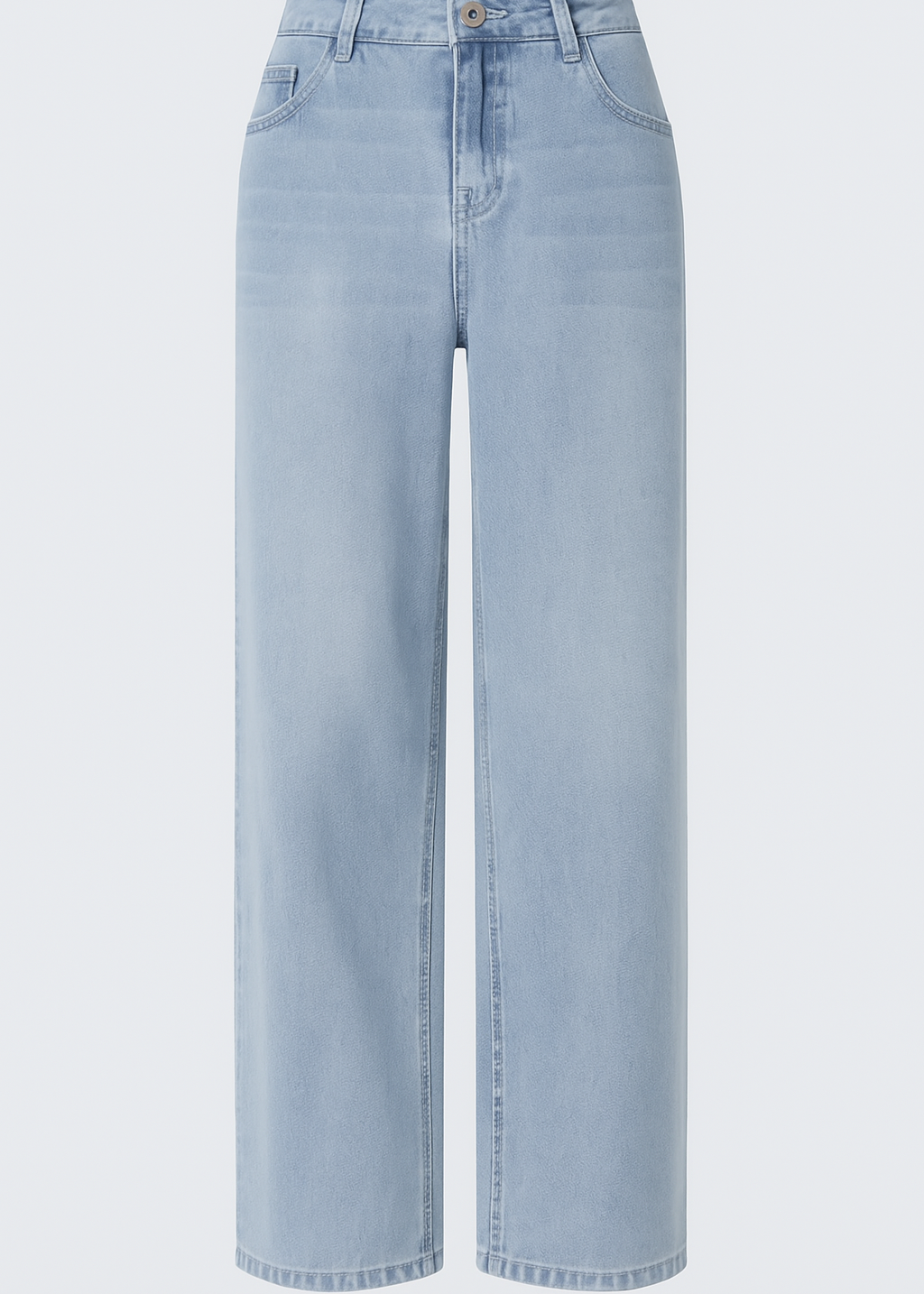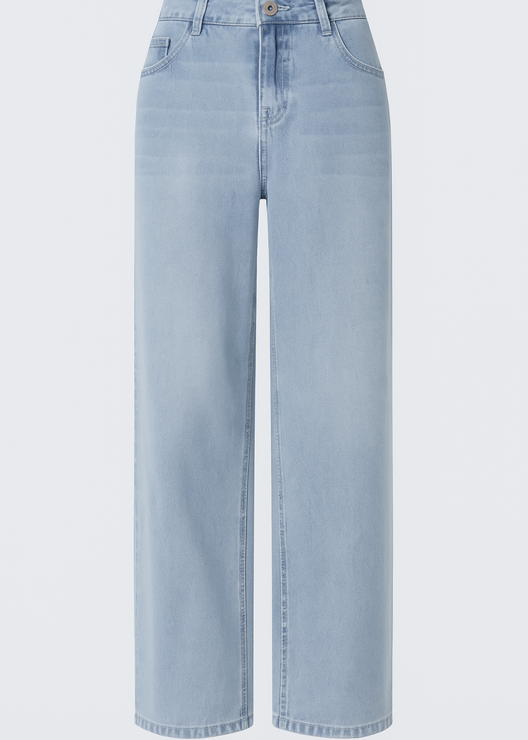 Modernos, cómodos y con un estilo atemporal. Estos vaqueros de corte ancho ofrecen una silueta relajada que combina elegancia y comodidad a la perfección. Su diseño de talle medio y pernera amplia estiliza la figura, aportando un aire casual y sofisticado en cada paso.