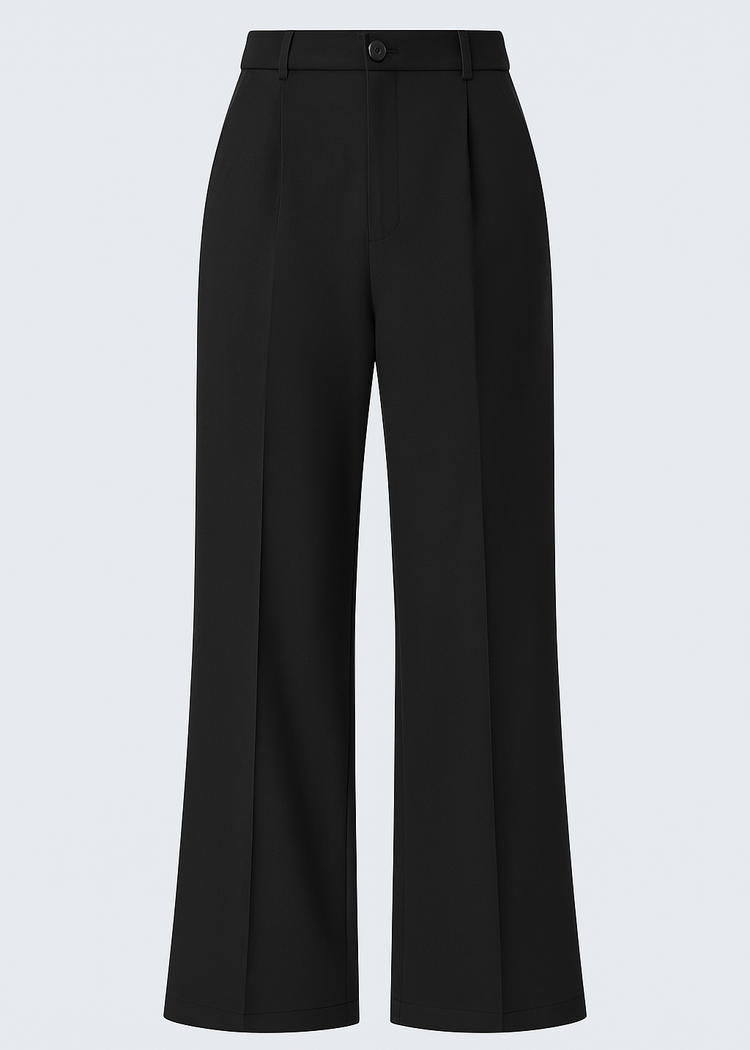 Sofisticado, cómodo y versátil. Este pantalón de vestir de corte palazzo combina un diseño moderno con una caída fluida que estiliza la figura y aporta un toque de elegancia a cualquier look. Su cintura alta con cinturón realza la silueta, mientras que su tejido suave y ligero garantiza libertad de movimiento y confort durante todo el día.